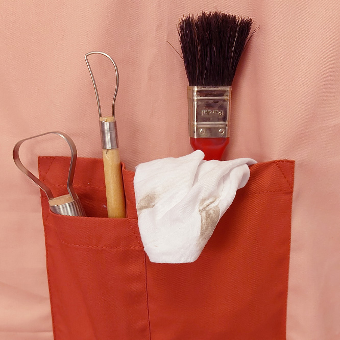 "Perfeito para ceramistas, oleiros e para quem esteja iniciar-se nas cerâmicas. Existem em várias cores, dependendo dos materiais que estamos a trabalhar. São fáceis de lavar, elegantes e super práticos!”