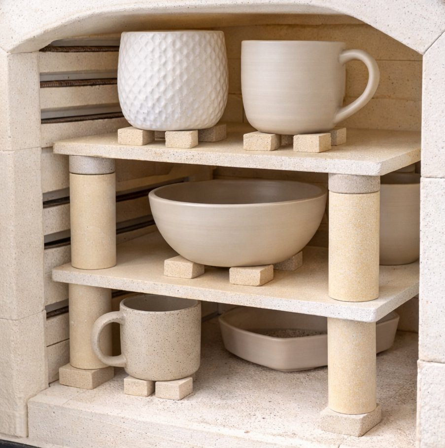 Os calços de cordierite são elementos essenciais para uma gestão eficiente e segura do espaço no forno cerâmico, permitindo ajustar alturas, desfasar peças e optimizar a circulação de calor durante a cozedura.