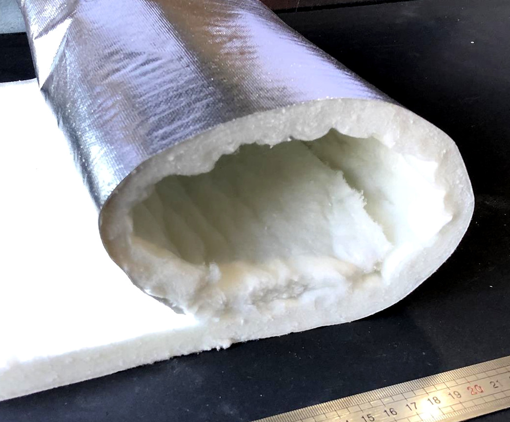 Manta tecida robusta, leve e flexível, fabricada a partir de fibras bio-solúveis fiadas, com uma folha de alumínio de 18μm com reforço de malha em fibra de vidro, colada a uma face com adesivo de alta temperatura.