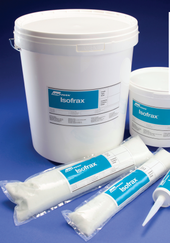 Fibra Mastique 1200ºC, temperatura de classificação, Isofrax são materiais de isolamento compostos por alcalino, lã de silicato de terra dispersa em aglutinantes de alta temperatura, que na secagem produz uma estrutura isolante forte com baixa condutividade térmica.