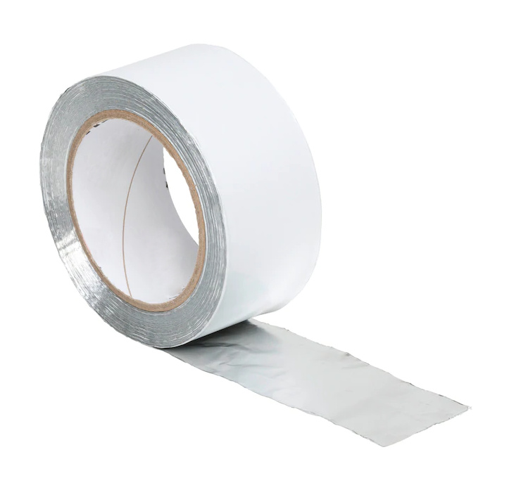 Fita adesiva de alumínio puro de 30 a 65 microns (µm) espessura, muito resistente em rolo de 50 metros.