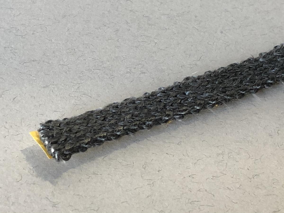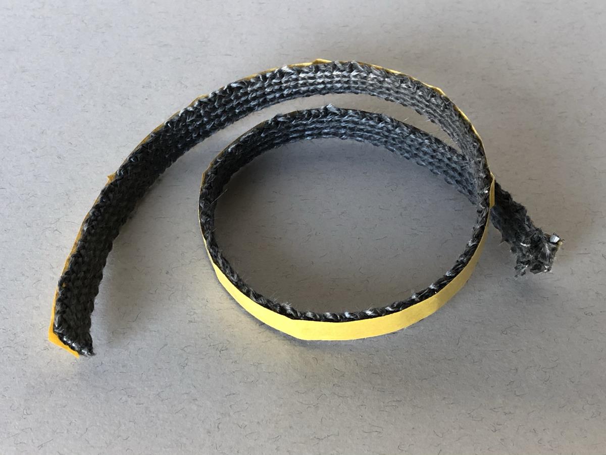 Empanque de fita / cinta tricotada de fibra de vidro autoadesiva, com 12mm de largura e 3mm de espessura.