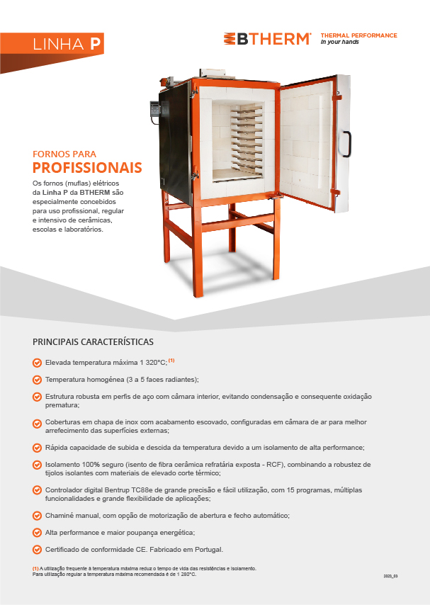 Os fornos de estúdio elétricos da linha P da BTHERM são especialmente concebidos para uso profissional, regular e intensivo de cerâmicas, escolas e laboratórios.