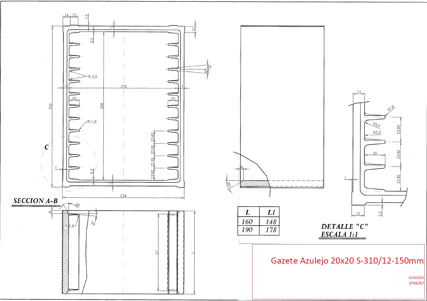 Este modelo de gazete é indicado para azulejos 20x20cm, ou outras medidas que permitam o seu apoio (ver desenho técnico), e é um modelo com provas dadas de durabilidade e performance.