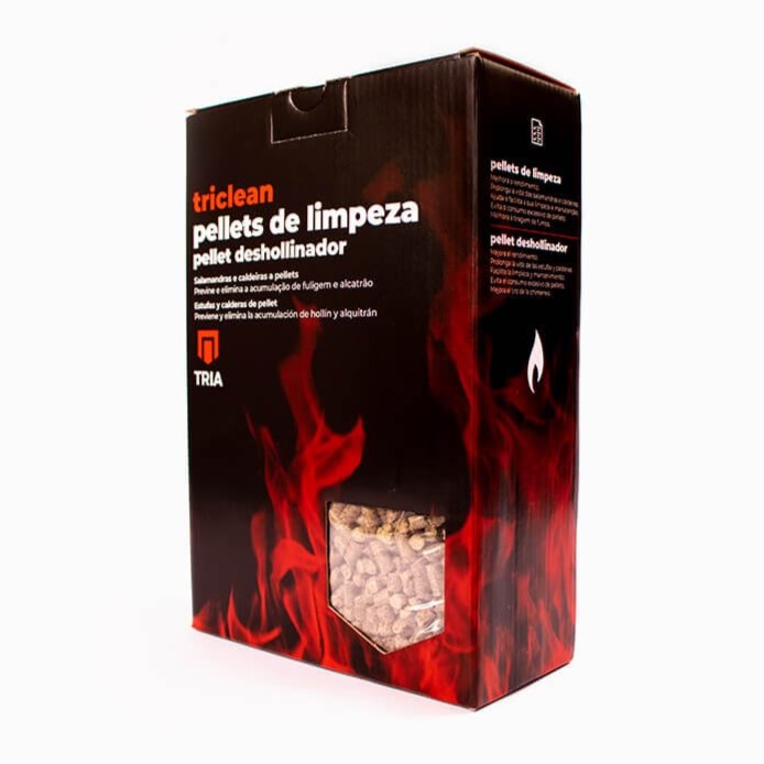 - Drante a queima do TRICLEAN - PELLETS DE LIMPEZA são libertados fumos e substâncias catalíticas que atacam e decompõem os resíduos de fuligem, alcatrão e poeiras provenientes dos pellets de aquecimento.