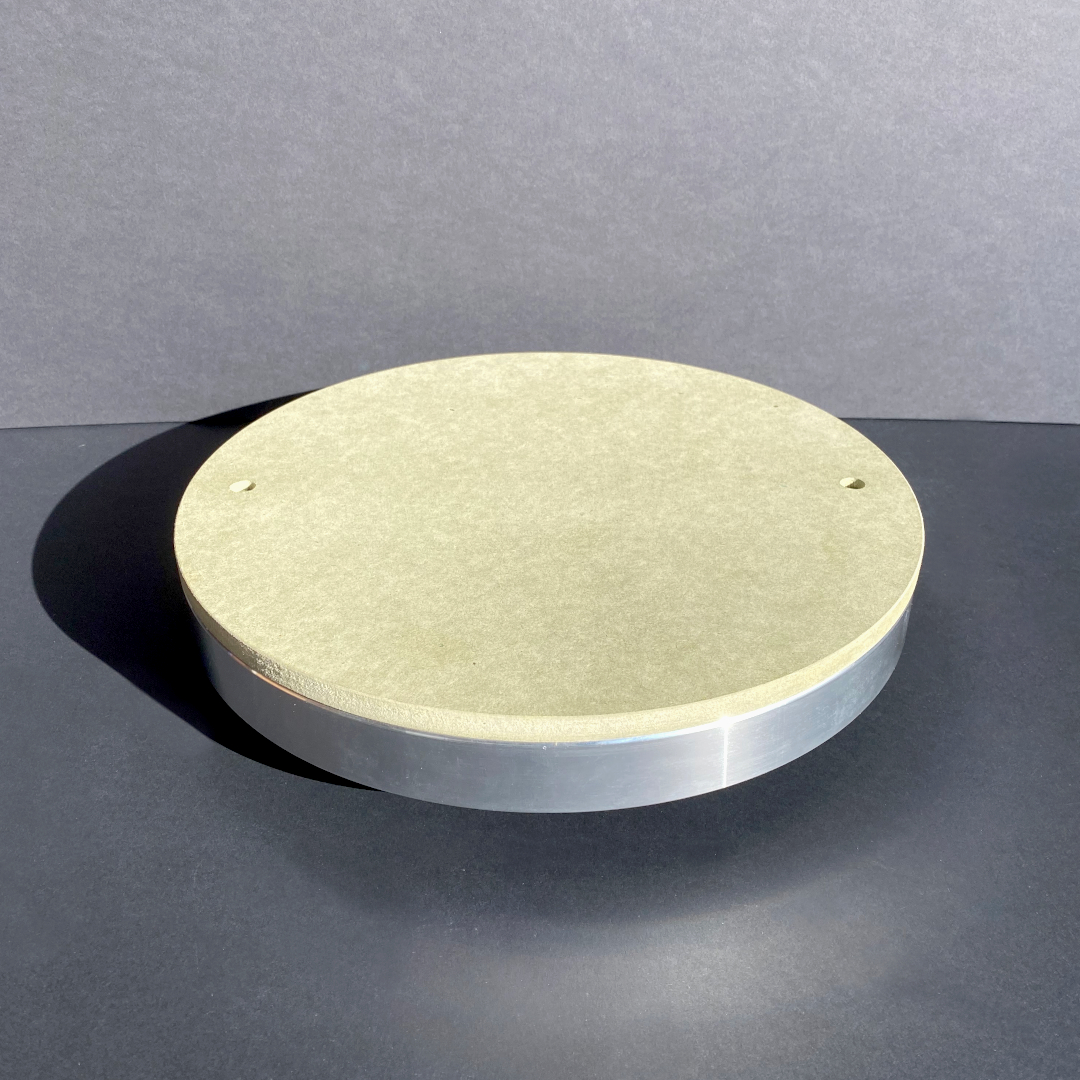 Prato de madeira para usar com rodas de oleiro com pinos.